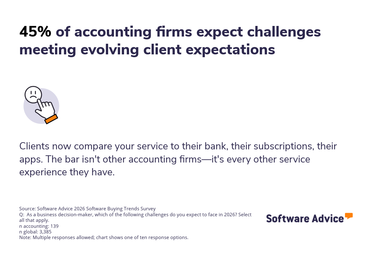 Keeping a client is more profitable than finding new ones. That's why 55% of accounting firms have recently invested in, or plan to invest, customer relationship management (CRM) systems, according to Software Advice’s 2026 Software Buying Trends survey*.