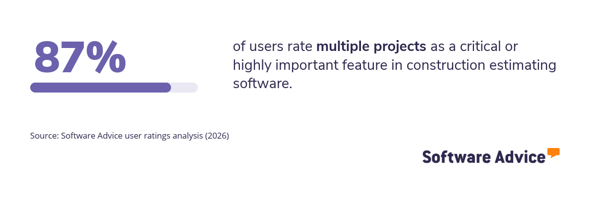 87% of users rate multiple project management as critical or high priority, making it the highest-rated feature in construction estimating software. General contractors don't run one job at a time. They run portfolios, and without a consolidated view, the project that is quietly bleeding cash does not get attention until it is too late.