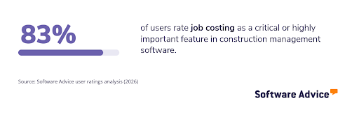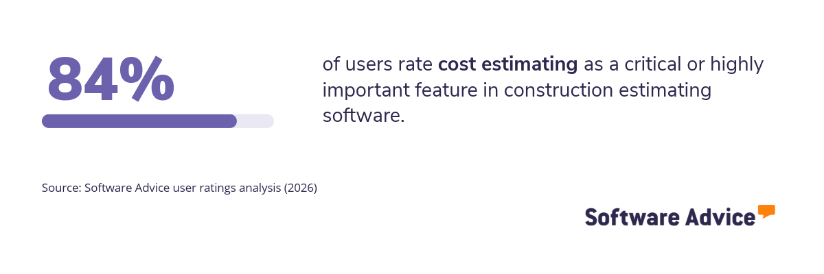 *Key features: To identify the key features of this article, we asked users to rate, on a scale of “low importance” to “critical,” how important different features are for construction management and construction estimating software. The features showcased are those that the highest percentage of reviewers rated as “highly important” or “critical” over the past two years (as of February 02, 2026).