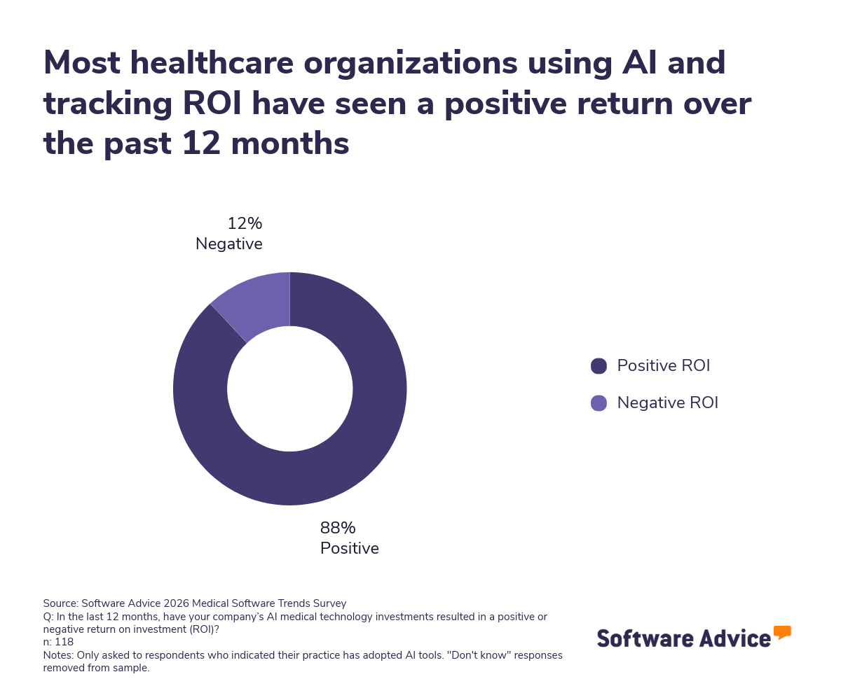 The same 2026 Software Advice survey reveals that while many practices have adopted AI, not all are measuring its financial or operational impact.