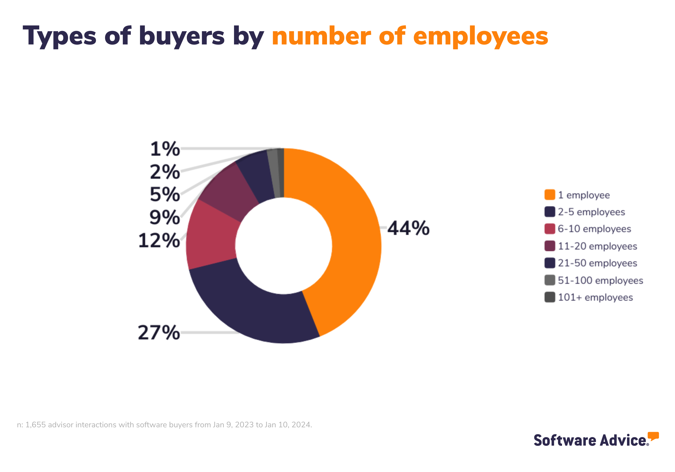 The buyers we interacted with are largely small businesses. You’ll find the demographics of the buyers below, so you can see the sizes and types of businesses.