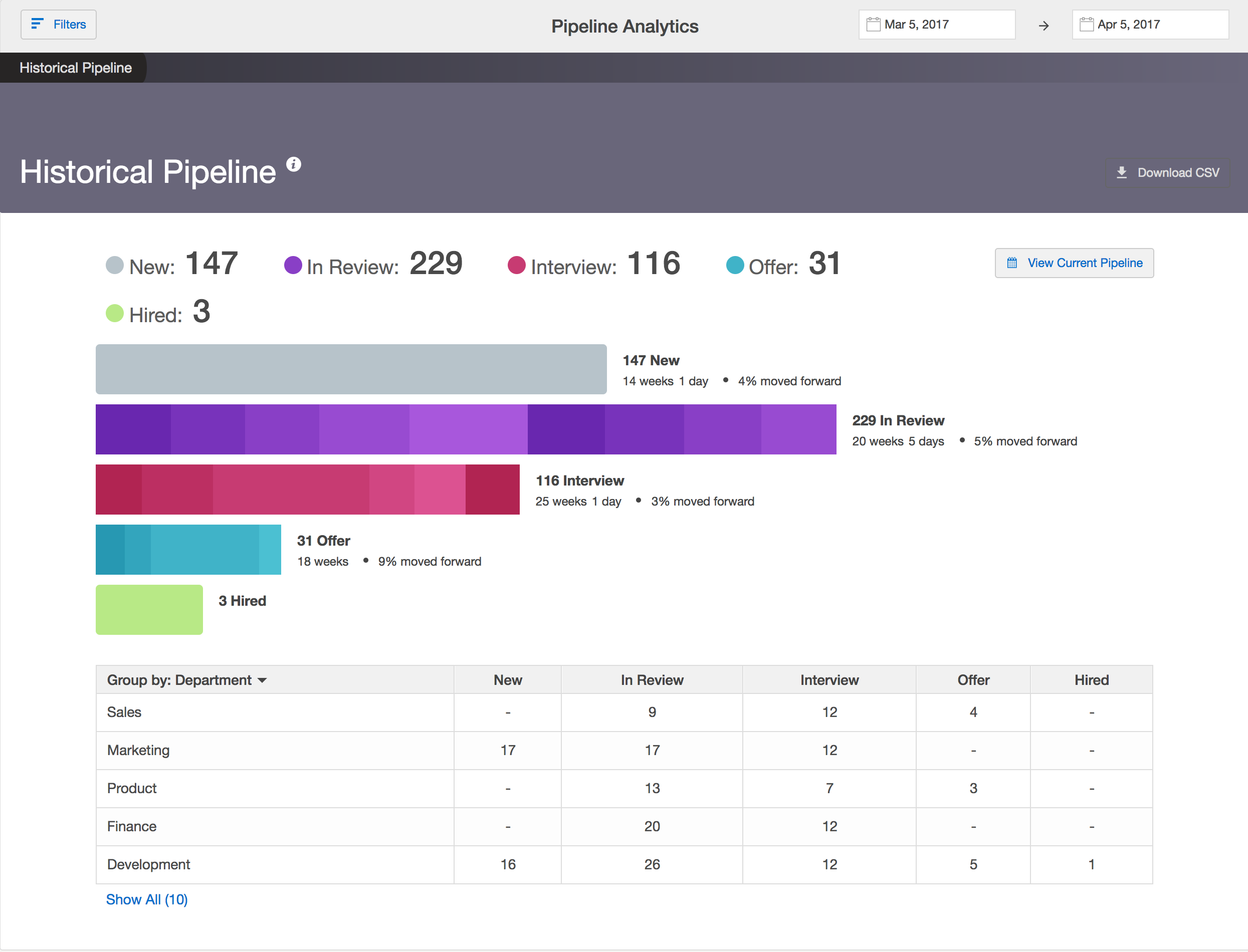 Historical hiring pipeline in SmartRecruiters